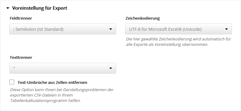 Folgende 'HTML-Editoren' sind in GMLU-Newsletter integriert und nutzbar: Grundeinstellung ExportHier legen Sie die Voreinstellung für den Export von CSV-Dateien fest, z. B. für den Export von Abonnentendaten. Bei der Durchführung jedes Exportes können Sie bei Bedarf auch eine abweichende Einstellung wählen. Standardeinstellung ist die Option 'UTF-8 für Microsoft Excel® (Unicode)', technisch gesprochen 'UTF-8 mit BOM'. Dieses Format wird von den meisten Officeanwendungen automatisch erkannt, so dass Umlaute und Sonderzeichen ohne manuelle Formatwahl korrekt importiert werden. StatistikeinstellungenTragen Sie Ihre eigenen Maximalwerte ein, um die rot|gelb|grün Farb-Umschaltung der Statistik-Anzeige für Öffungsrate, Klickrate und Bouncerate an die typischen Werte Ihrer Mailings anzupassen. Nur Ihre besten Mailings sollten den grünen Bereich erreichen. Die Farb-Umschaltung erfolgt automatisch in Drittel-Stufen des eingetragenen Maximalwertes. Empfehlung: Notieren Sie aus der Statistik Ihrer bisherigen Mailings die Durchschnittswerte für Öffnungsrate, Klickrate und Bounces. Damit dieser Durchschnittswert zukünftig im mittleren Drittel der Skala landet, tragen Sie das Doppelte dieses Wertes als Maximum in das jeweilige Feld ein. Tragen Sie z. B. 30% als Maximum ein, dann werden anschließend die Werte bis 10% rot, bis 20% gelb und darüberliegende Werte grün gefärbt. Sie sehen sofort, ob Ihr aktuelles Mailing über- oder unterdurchschnittlich abschneidet. Typische Durchschnittswerte: