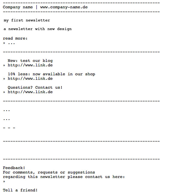 Automatic line break in the text part: Depending on your subscribers' settings in their email programs, line break is automatically set. If you want to, you may also determine the break, for instance, on 60 characters.